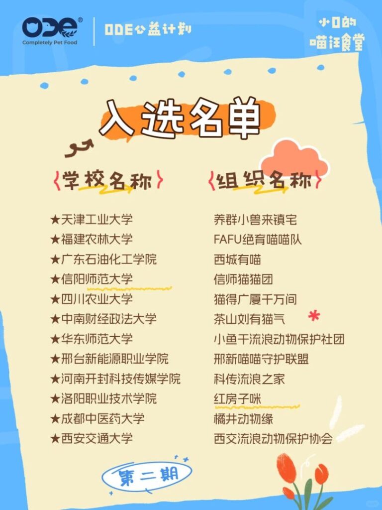 💚 Season 2 recruitment completed ✔️ (list announced as shown in image) 🏫 Partnering with 12 university rescue organizations 🐈 Continuing our love, delivering 51,200 yuan worth of charity supplies to more places in need